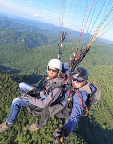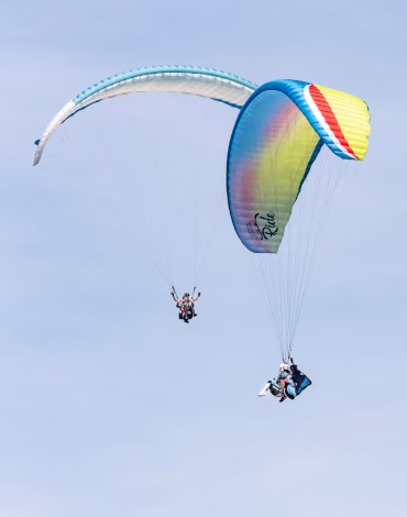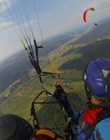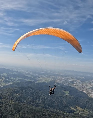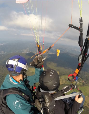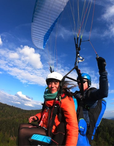So könnt Ihr von Anfang an den gesamten Gleitschirmflug zusammen genießen und zu einem gemeinsamen Erlebnis werden lassen.